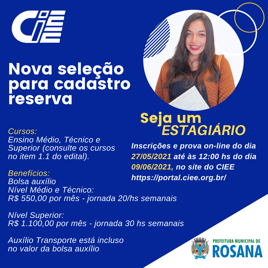 A Prefeitura Municipal de Rosana torna pública a abertura de inscrições para novas seleções de cadastro reserva de estagiários.
