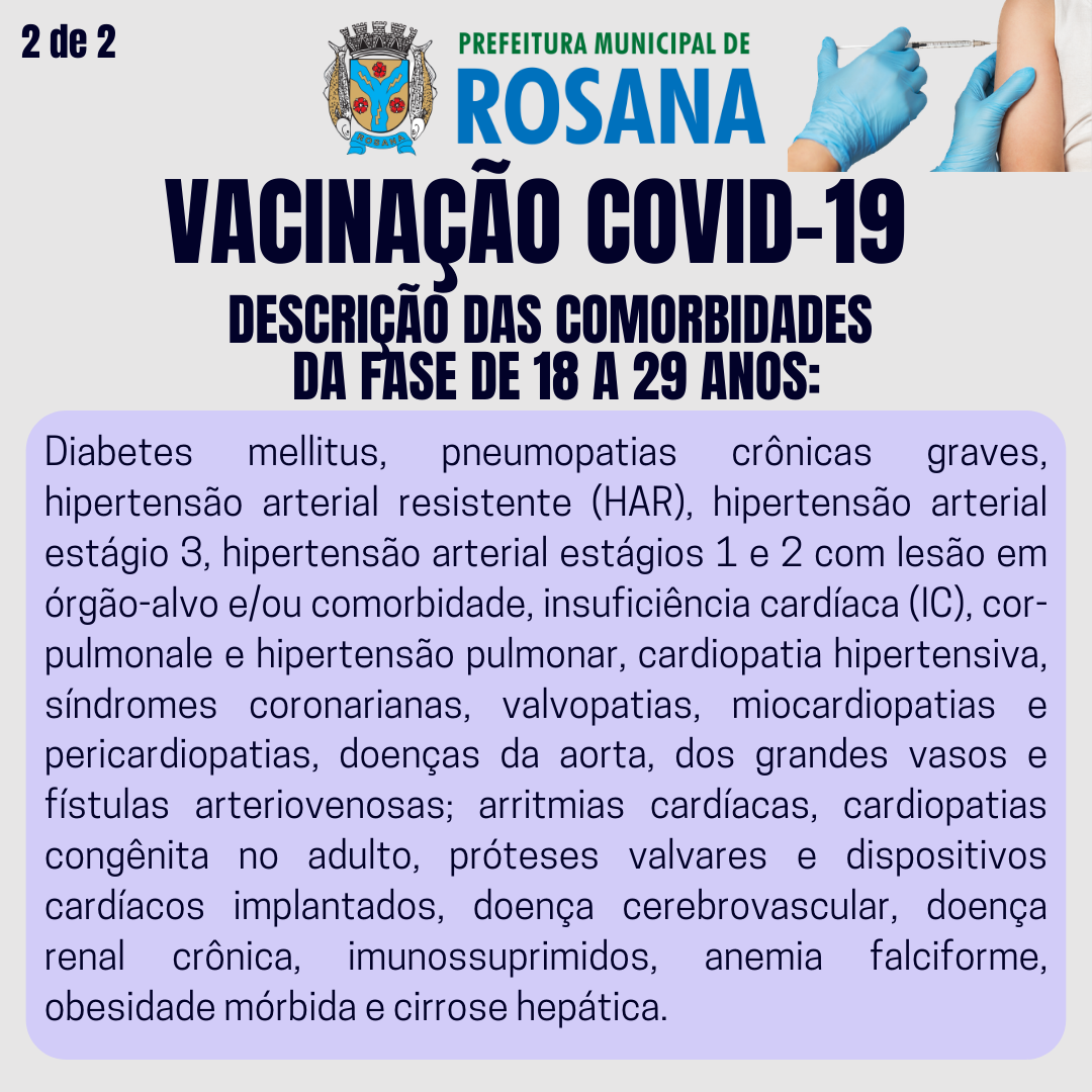 Atenção pessoas com comorbidades de 18 a 29 anos e pessoas cadastradas no programa (BPC)