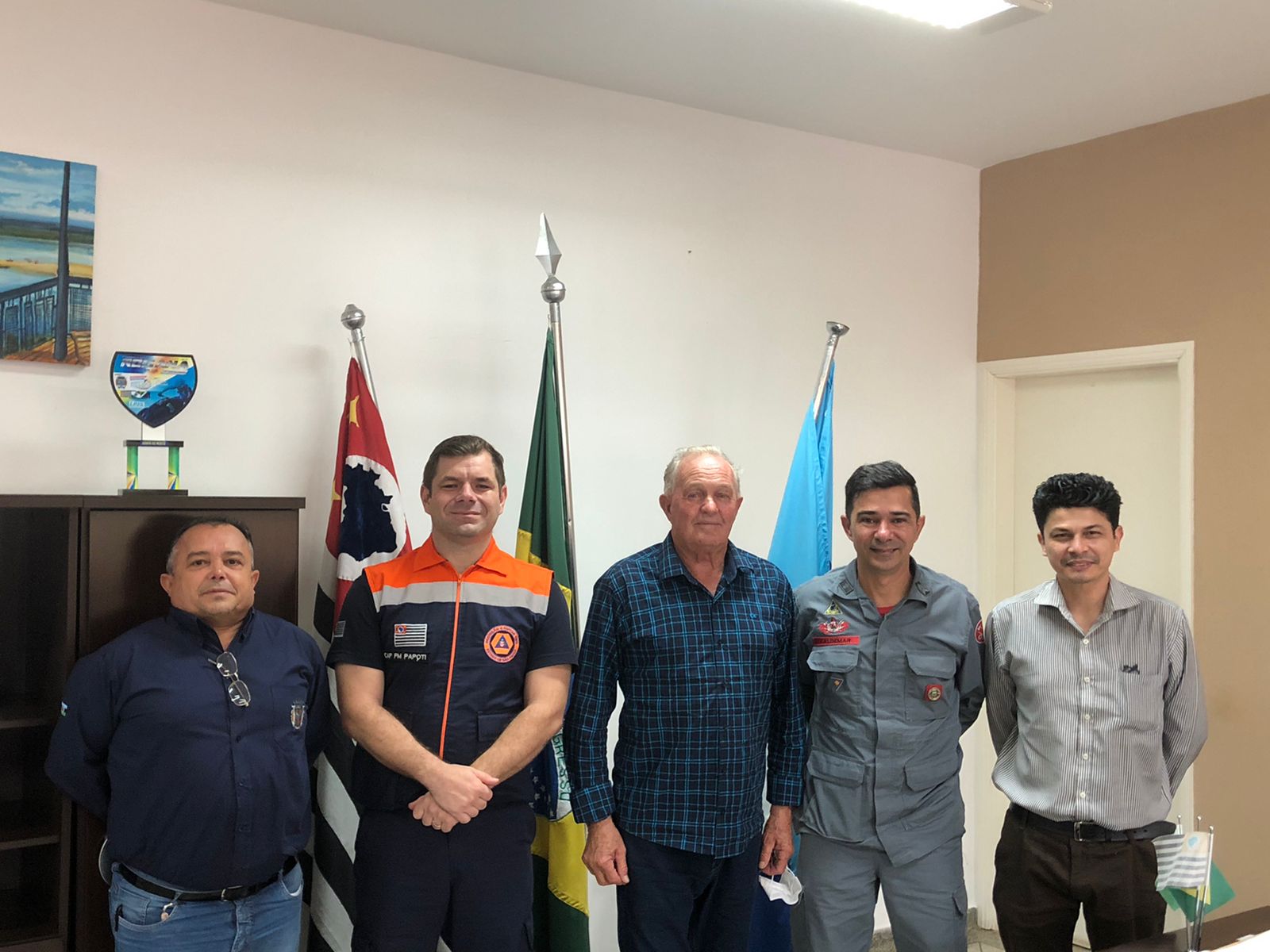 Participaram do encontro, o prefeito Tivo, o Capitão PM do Corpo de Bombeiros, João Henrique Papoti, coordenador da Defesa Civil regional, o Sargento do Corpo de Bombeiros de Rosana, Valdemir Valdemar de Souza, o Diretor de Convênios, José Luís do Nascimento, o Diretor de Finanças e Orçamentos, Claudinei Alves Martins e o Secretário de Planejamento e Gestão, Kennedy Gabriel.