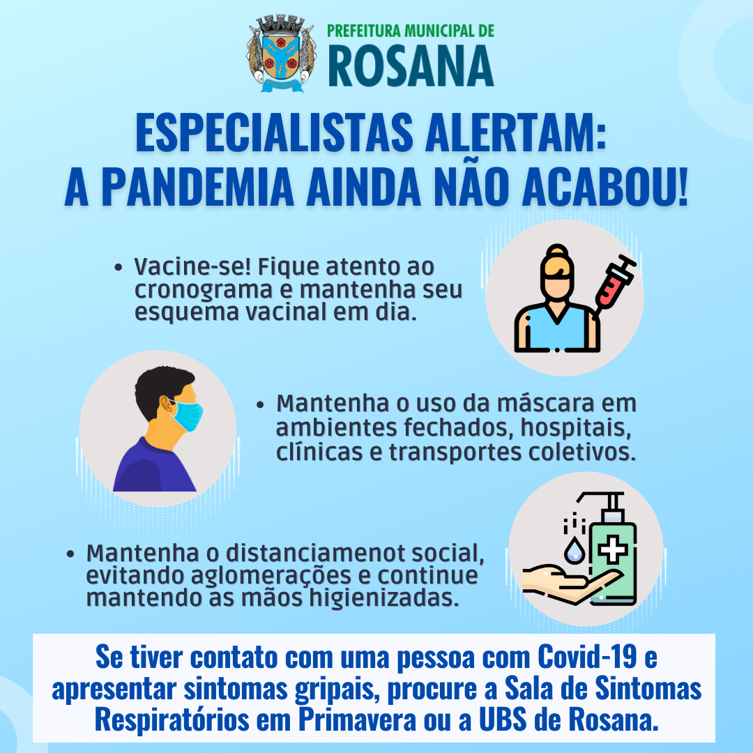 Município de Rosana, especialistas alertam que a pandemia ainda não acabou! Mantenha as medidas de prevenção.