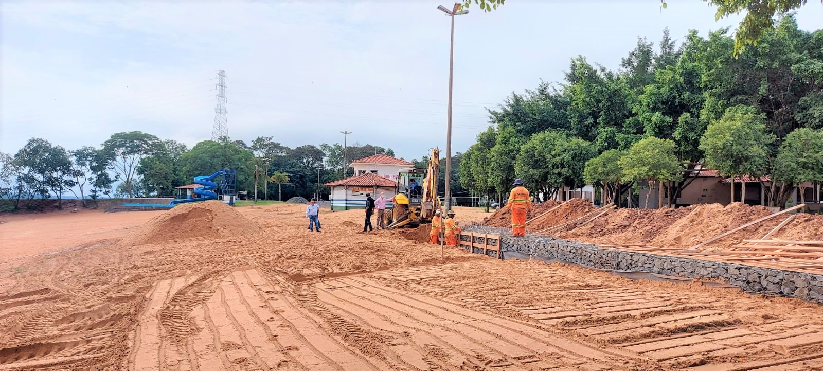 No Balneário de Rosana, o muro de arrimo que está sendo construído com gabiões de pedra, gaiolas metálicas formadas por fios de aço galvanizado, tem a finalidade de nivelar o terreno, promovendo o aterramento que dará sustentação à parte superior da área, que passará a suportar o peso da areia em dias de chuva e evitando o assoreamento e escoamento excessivo de areia para o leito do rio.