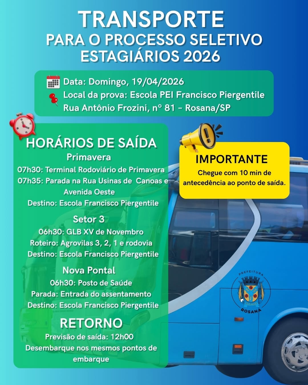 TRANSPORTE PARA O PROCESSO SELETIVO ESTAGIÁRIOS 2026